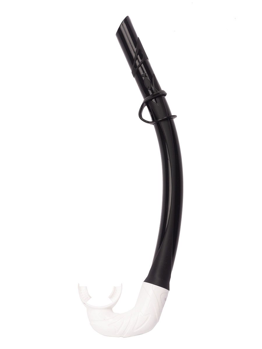 Трубка создана специально для снорклинга и подводной охоты. Специальная изогнутая форма трубки обеспечивает прилегание к лицу, значительно снижая сопротивление при плавании и погружении. Сверху расположен специальный волноотбойник, не дающий воде и брызгам попадать в полость трубки. Загубник выполнен из гипоаллергенного силикона, а его особая конструкция и гибкая соединительная вставка с тремя изгибами обеспечивают удобное расположение загубника при любой форме лица. Крепление для ремешка маски классическое.