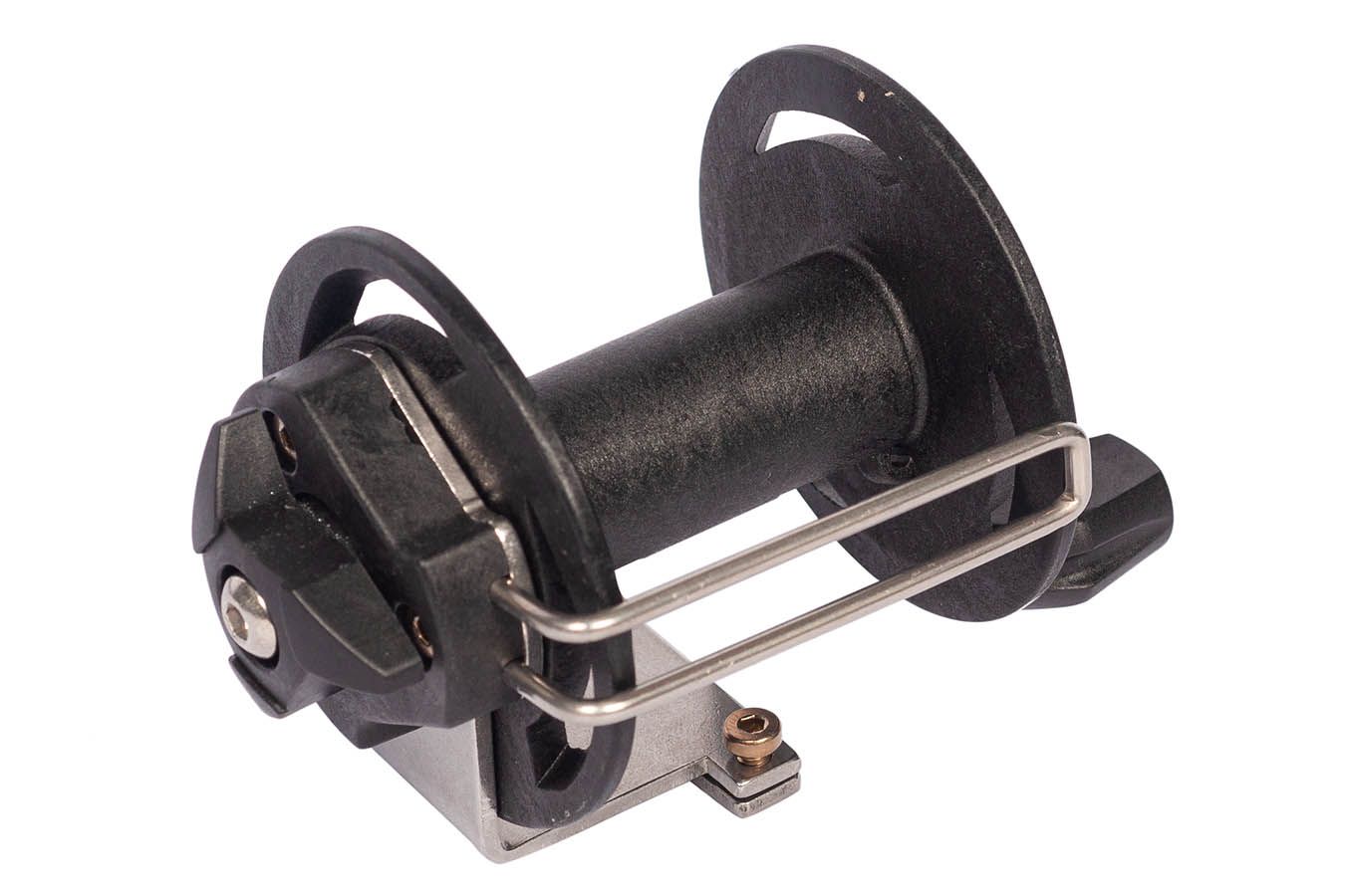 Крепится катушка в специальный паз на рукояти ружья с помощью металлической пластины и болтов с шестигранником.