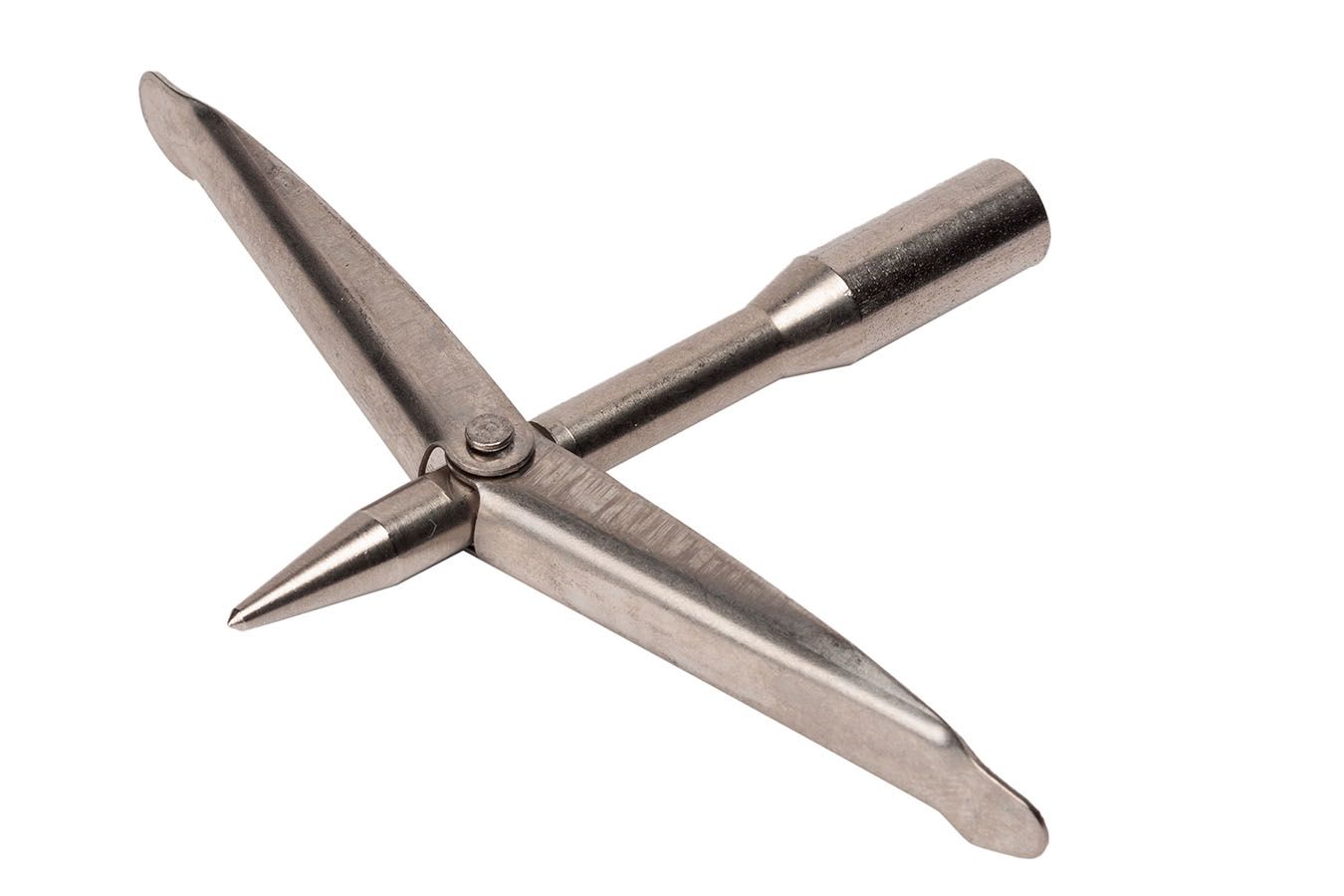 Этот наконечник тонкий и при этом с огромными флажками. Подойдет для охоты на мягкую рыбу, сом, голавль, семга и т.п.