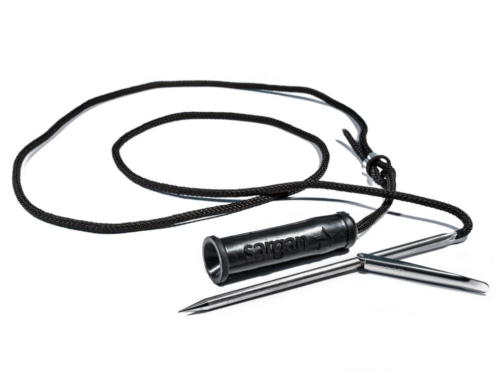 Веревочный кукан с иглой из нержавеющей стали и резиновым держателем.