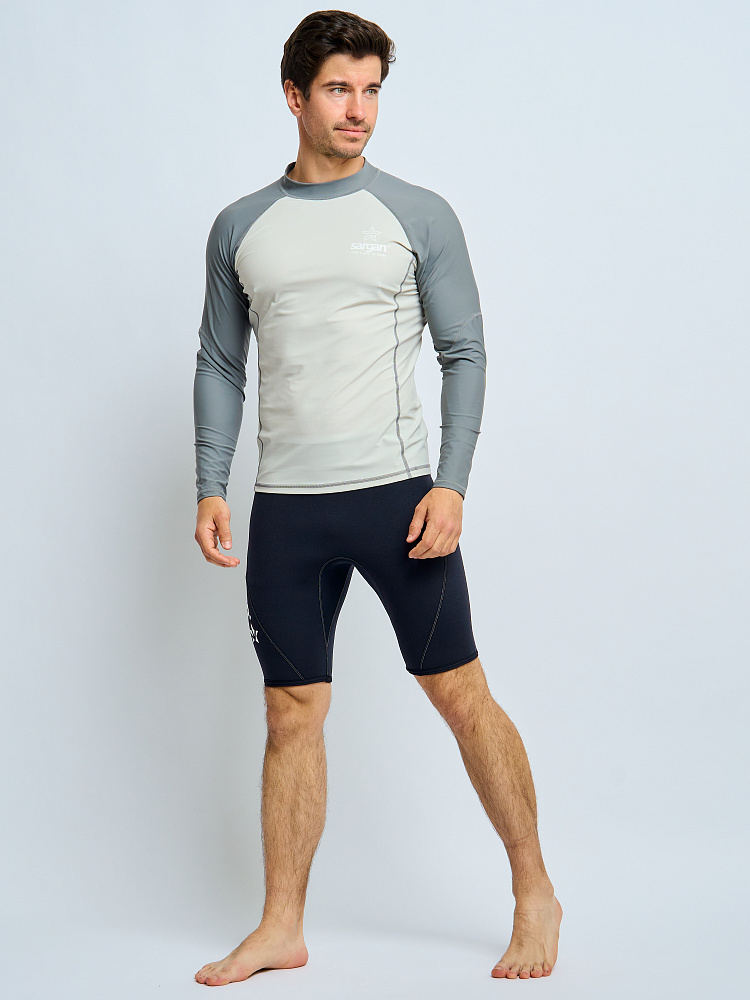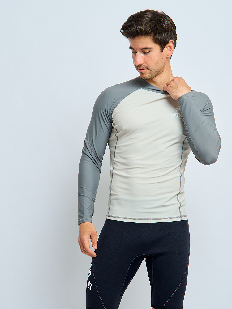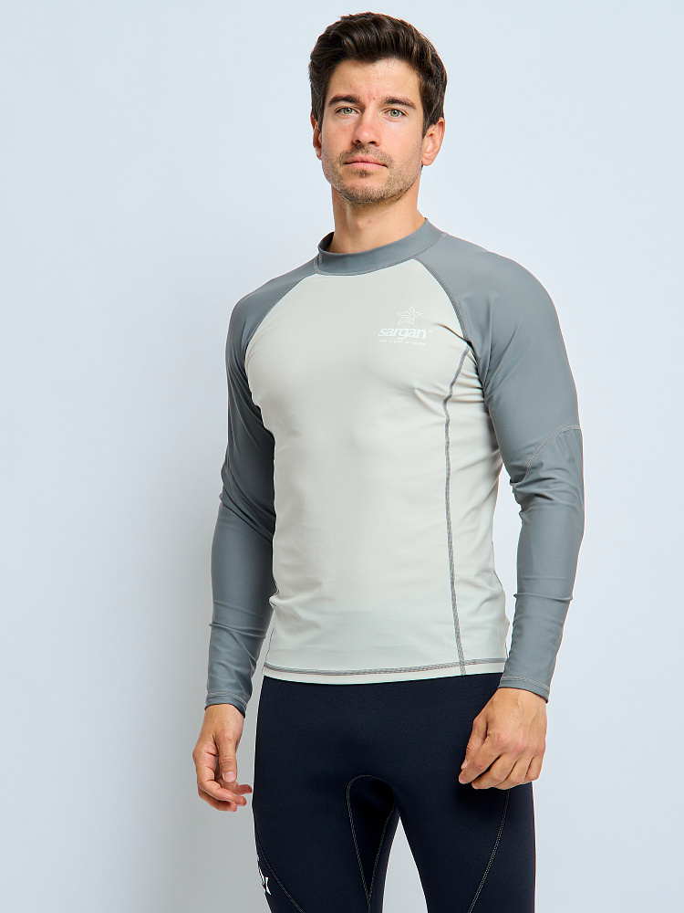 Футболка рашгард лонгслив САРГАН "АГИДЕЛЬ 1.0" муж. UPF 50+ св.серый-т.серый-т.серый, S