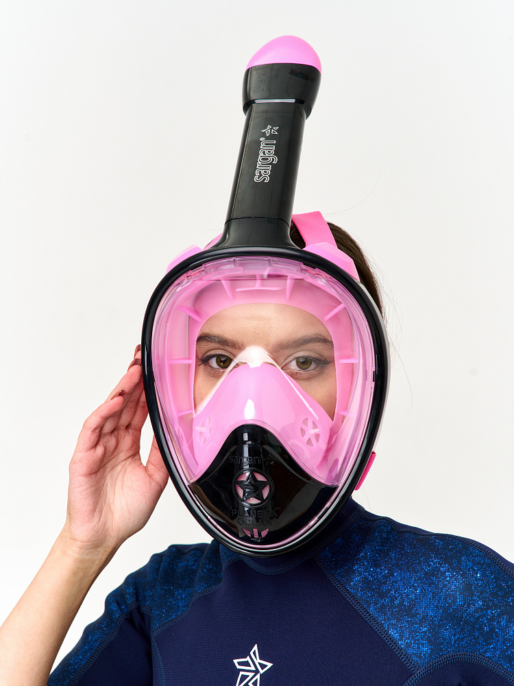 Маска полнолицевая САРГАН "ПЛАНЕТА ОКЕАН 2.0" цвет черный/розовый Sargan