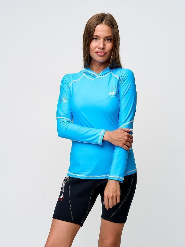 Футболка рашгард САРГАН "АГИДЕЛЬ ХУДИ" женская UPF 50+ голубой, XS